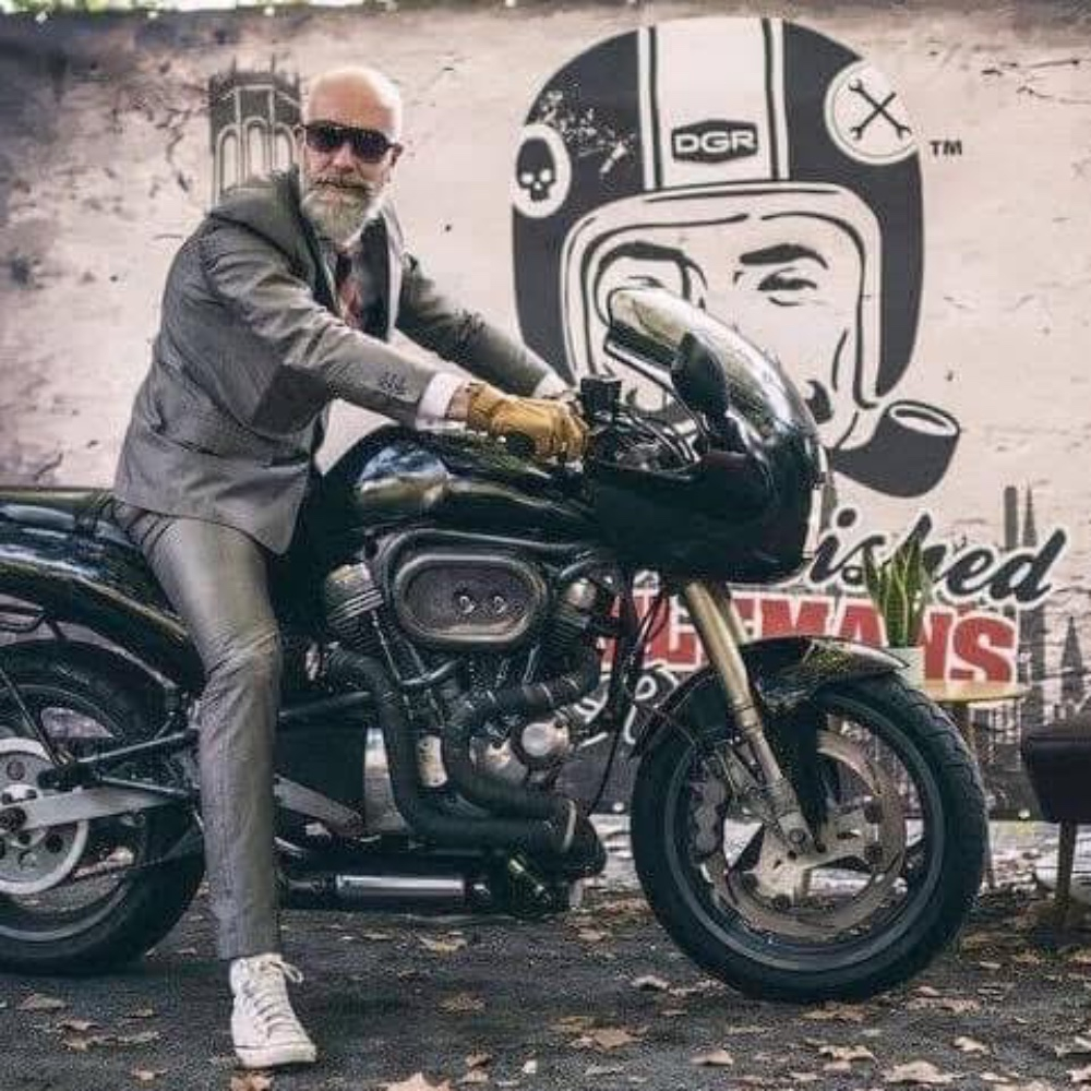 Ik rij op mijn motor voor Men's Health in The Distinguished Gentleman's Ride
