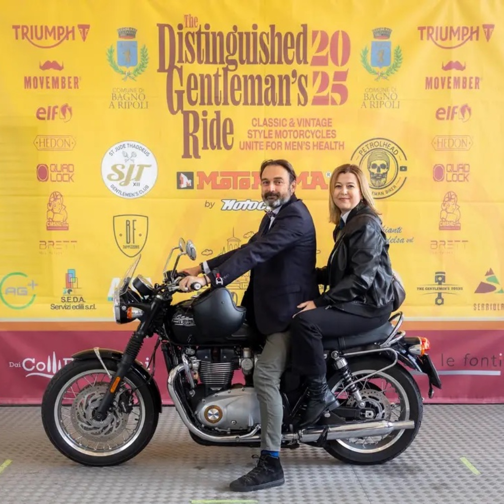 Domenica 18 maggio 2025, parteciperò a The Distinguished Gentleman's Ride con altri uomini e donne in tutto il mondo per raccogliere fondi e consapevolezza per il cancro alla prostata e la salute mentale degli uomini a nome di Movember.