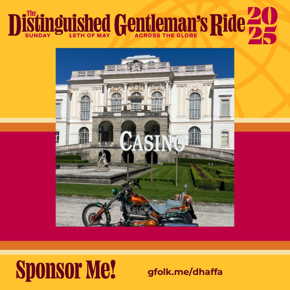 Thursday 24th Apr 2025 Am Sonntag, dem 18. Mai 2025, nehme ich zusammen mit anderen Männern und Frauen aus aller Welt am "The Distinguished Gentleman's Ride" teil, um im Namen des Movember Geldmittel und Bewusstsein für Prostatakrebs und die psychische Gesundheit von Männern zu sammeln. Männer sterben im Durchschnitt 6 Jahre früher als Frauen, und das aus weitgehend vermeidbaren Gründen. Die Zahl der Männer, die darunter leiden, wächst, und wir müssen etwas dagegen tun. Bevor ich also meinen Tweed bügle und meine Stiefel poliere, möchte ich Sie bitten, sich mir anzuschließen, um Geldmittel zu sammeln und das Bewusstsein für diese Anliegen zu schärfen, indem Sie spenden, was Sie können, um den Männern, die wir lieben, zu helfen, ein glücklicheres und gesünderes Leben zu führen.My Sponsors