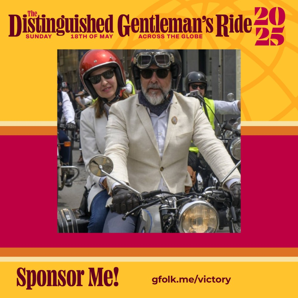 Saturday 29th Mar 2025El domingo 18 de mayo de 2025, participaré en The Distinguished Gentleman's Ride junto a otros hombres y mujeres de todo el mundo para recaudar fondos y crear conciencia sobre el cáncer de próstata y la salud mental de los hombres en nombre de Movember. Los hombres mueren, en promedio, 6 años antes que las mujeres y, en gran medida, por razones que pueden prevenirse. El número de hombres que sufren está aumentando y debemos hacer algo al respecto. Entonces, antes de planchar mi chaqueta y lustrar mis botas, les pido que se unan a mí para recaudar fondos y generar conciencia sobre estas causas donando lo que puedan a esta causa significativa y para ayudar a los hombres que amamos a vivir vidas más largas, felices y saludables.
